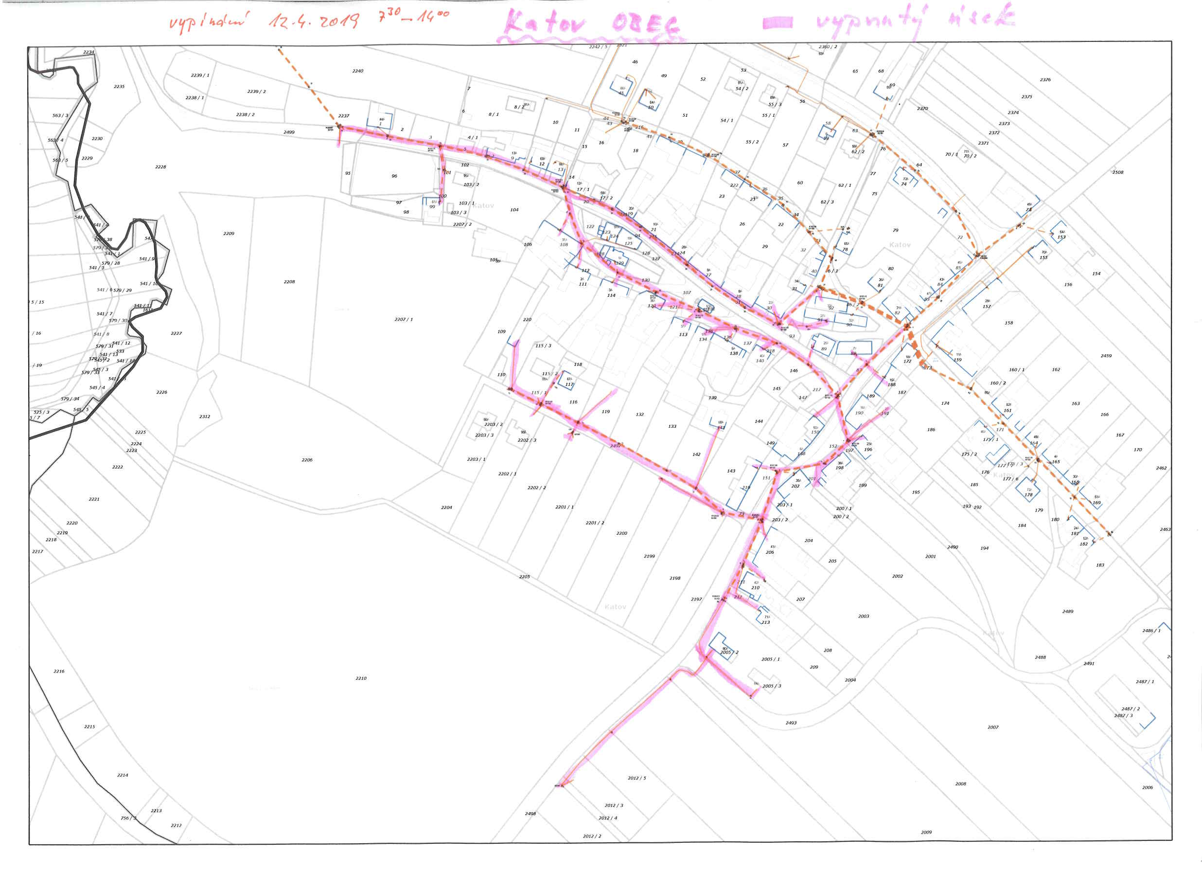 Dne 12.04.2019 od 07:30 hod do 14:00 hod část obce Katov - viz. mapka